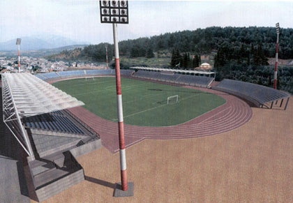 Συγκεκριμένα, η μικρή δυτική κερκίδα κατεδαφίστηκε, στη θέση της δημιουργήθηκε μία νέα, ελαφράς κατασκευής, ενώ προστέθηκαν δύο ακόμη γωνιακές κερκίδες δεξιά και αριστερά της. Σε όλες τις εξέδρες (και στην ανατολική που προϋπήρχε) τοποθετήθηκαν πλαστικά καθίσματα. Ανακαινίστηκαν οι χώροι κάτω από την ανατολική κερκίδα, δημιουργήθηκαν νέα δημοσιογραφικά θεωρεία και σουίτες, ενώ τέλος τοποθετήθηκαν και προβολείς. Τα έργα όμως δεν ολοκληρώθηκαν ποτέ, βάσει του αρχικού σχεδιασμού (βλ. σχέδια: 1, 2), με βασικότερες ελλείψεις τη μη στέγαση των κερκίδων και τη μη ολοκλήρωση του νοτίου πετάλου. Πάντως, το 2009 έγιναν κάποια έργα αναβάθμισης στους εσωτερικούς χώρους του σταδίου, ενώ τοποθετήθηκε και ένα μικρό στέγαστρο πάνω από τις θέσεις των VIPs (δεν απεικονίζεται). |