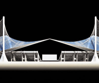 πιο πάνω μακέτα απεικονίζει την αρχική μελέτη Καλατράβα για το ΟΑΚΑ,