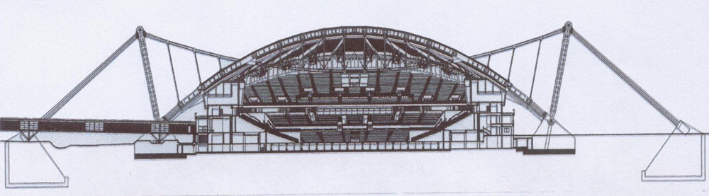 κύρια αίθουσα του Κλειστού της Θέρμης (με άνοιγμα στέγης 122 μέτρα)